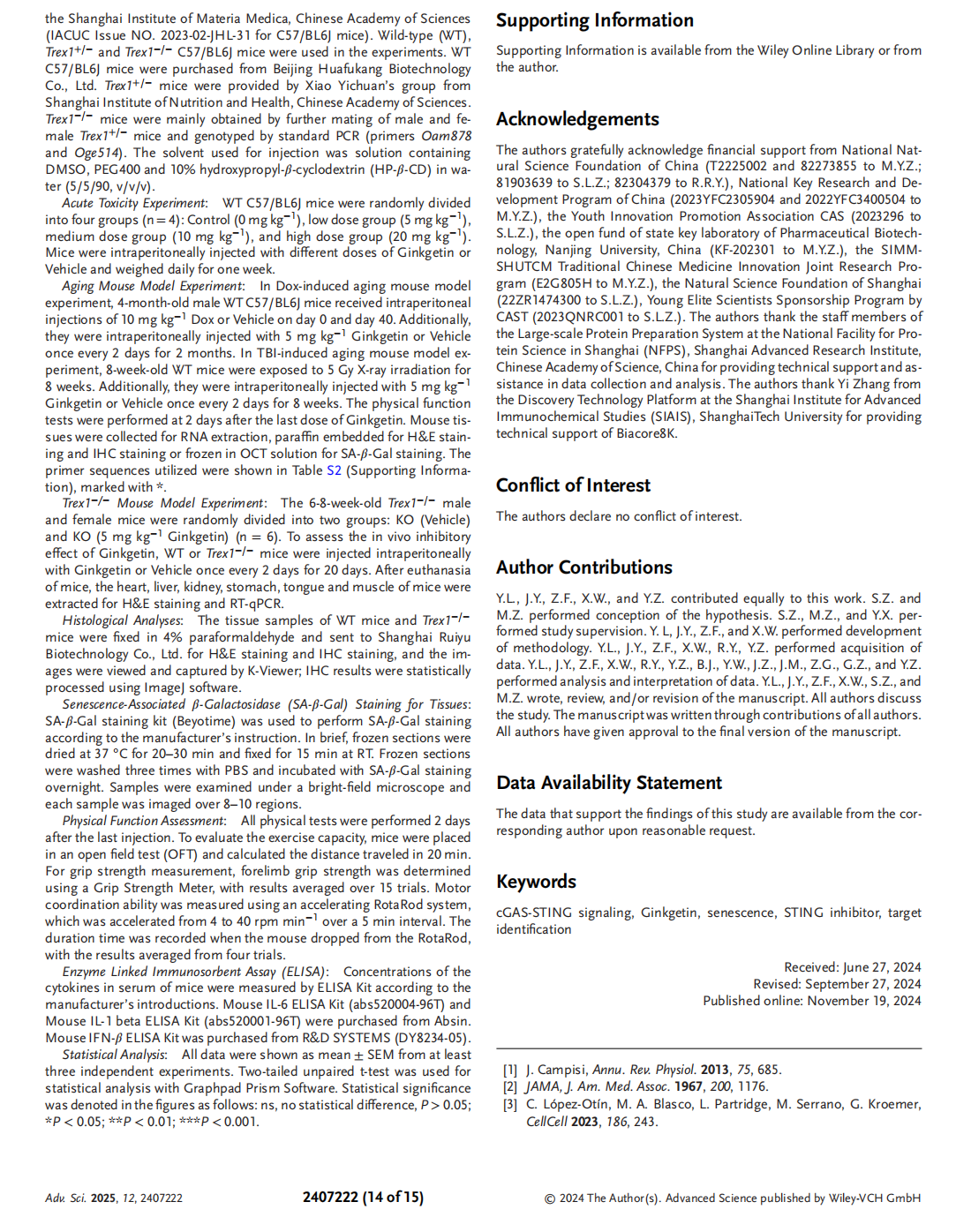 Ginkgetin Alleviates Inflammation and Senescence by Targeting STING