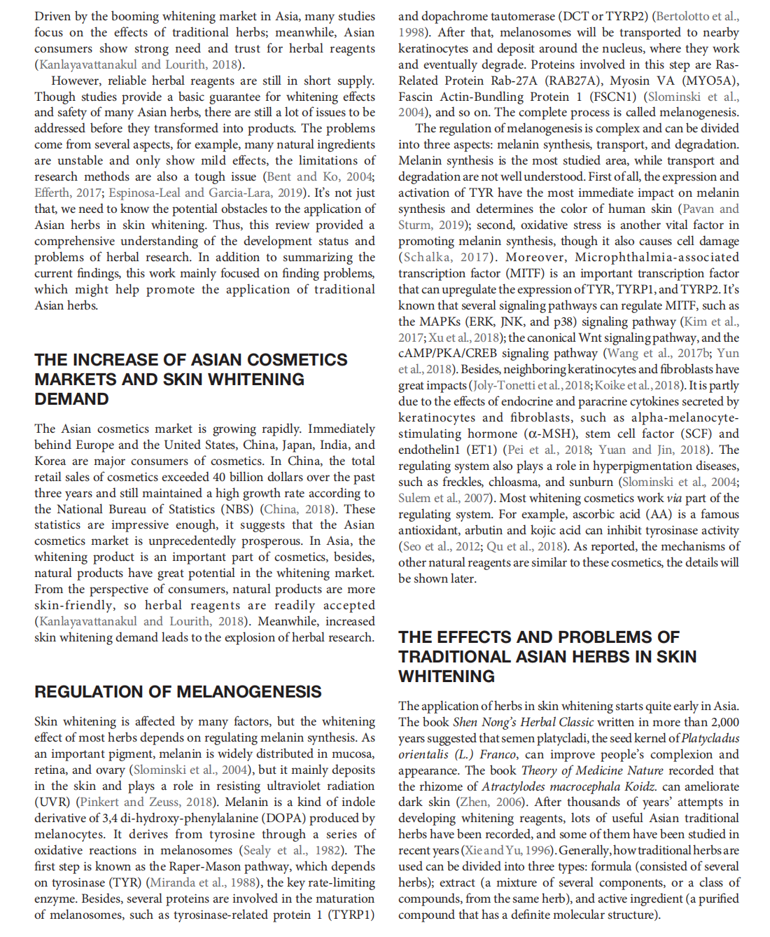 Traditional Asian Herbs in Skin Whitening: The Current Development and Limitations