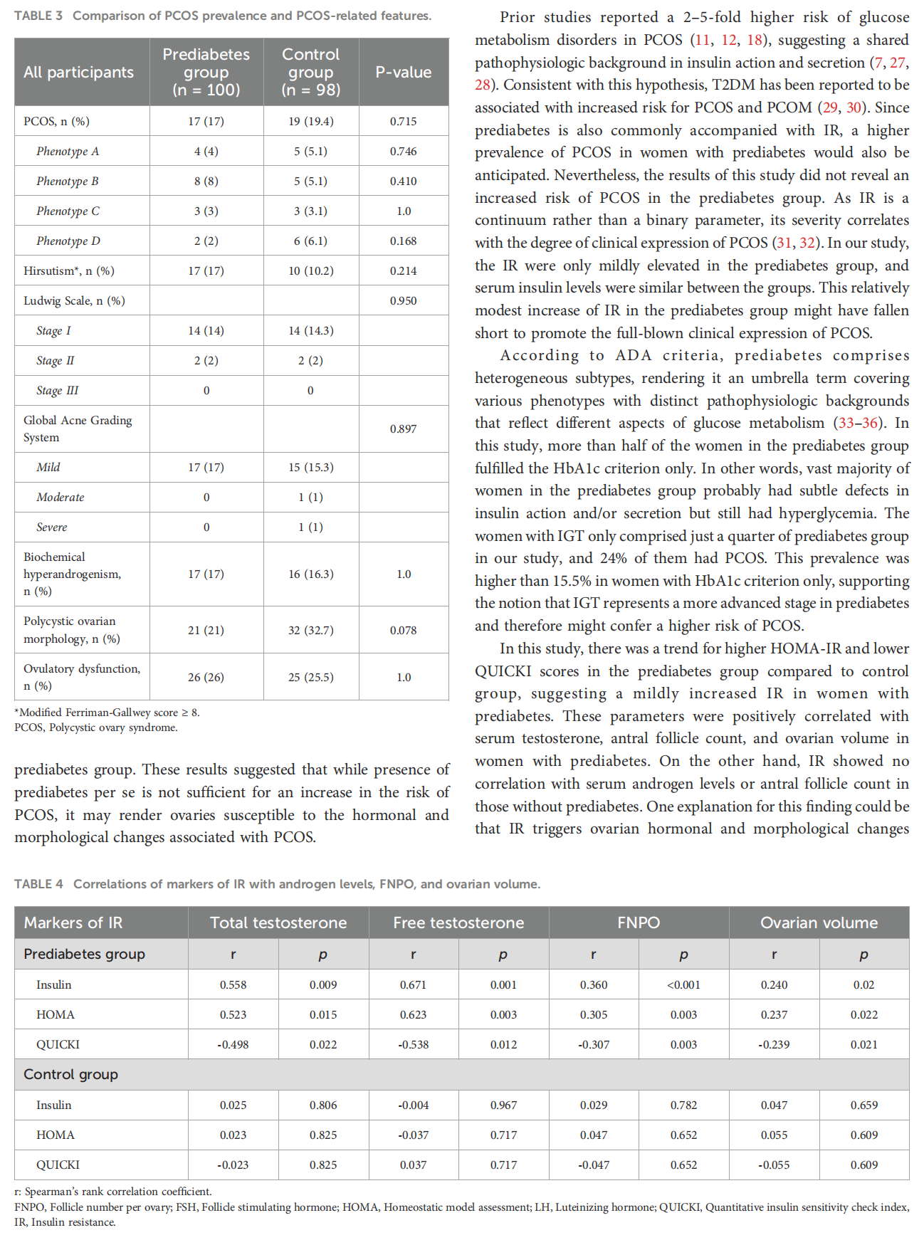 Methods: Of 3465 consecutive women applied between 2021 and 2023, 3218   women with diabetes mellitus or conditions affecting gonadal functions were excluded through digital screening and tele-interviews. Remaining 247 women underwent clinical assessments, excluding another 49 due to other endocrine diseases. The diagnosis of PCOS and prediabetes were based on Rotterdam and American Diabetes Association criteria, respectively.