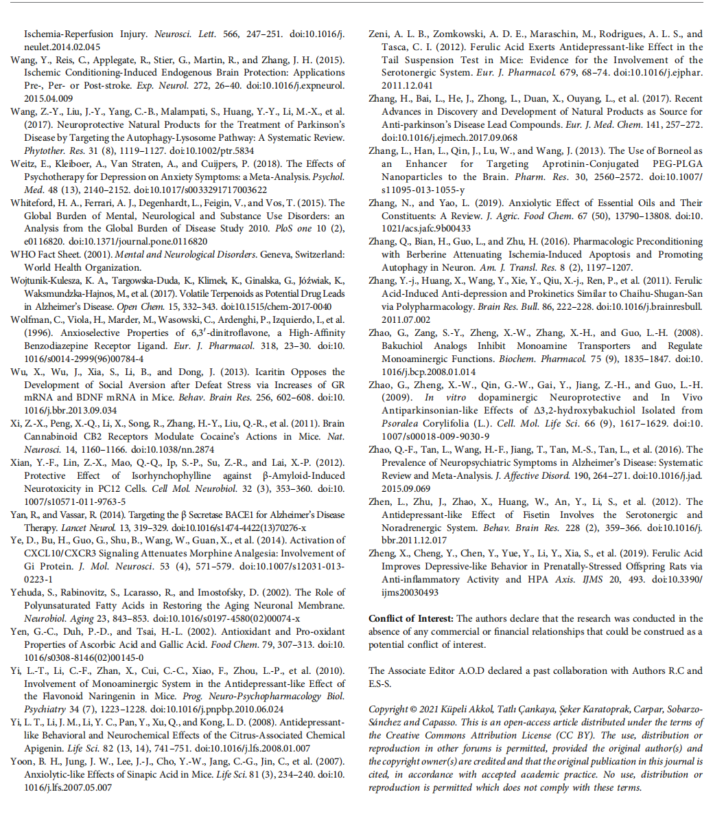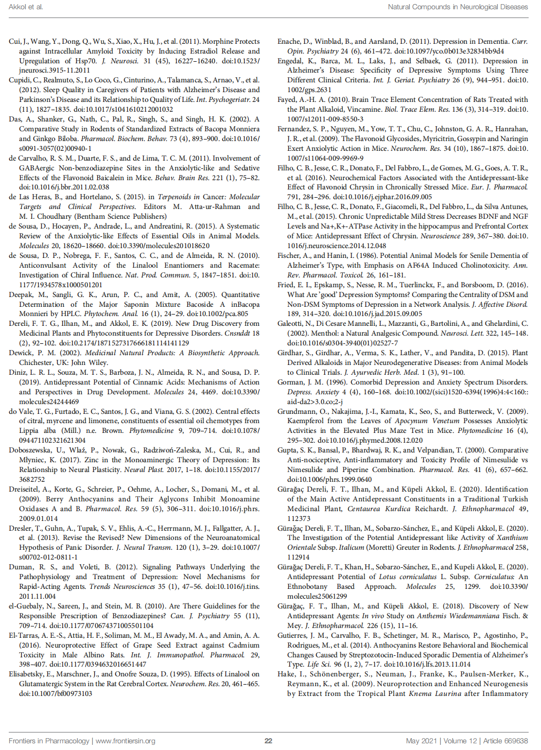 Citation: Küpeli Akkol E, Tatlı Çankaya I, S¸ eker Karatoprak Gç, Carpar E, Sobarzo-Sánchez E and Capasso R (2021) Natural Compounds as Medical Strategies in the Prevention and Treatment of Psychiatric Disorders Seen in Neurological Diseases. Front. Pharmacol. 12:669638. doi: 10.3389/fphar.2021.669638