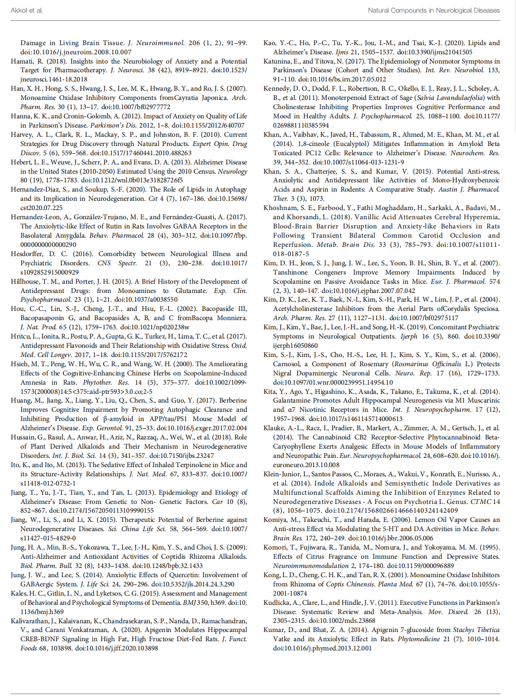Keywords: Alzheimer’s diseases, anxiety, depression, Parkinson’s disease, natural compound