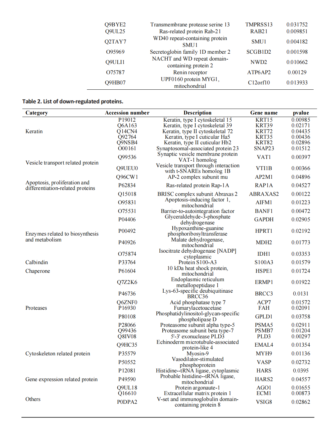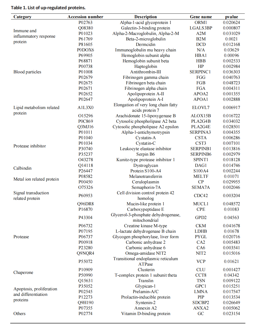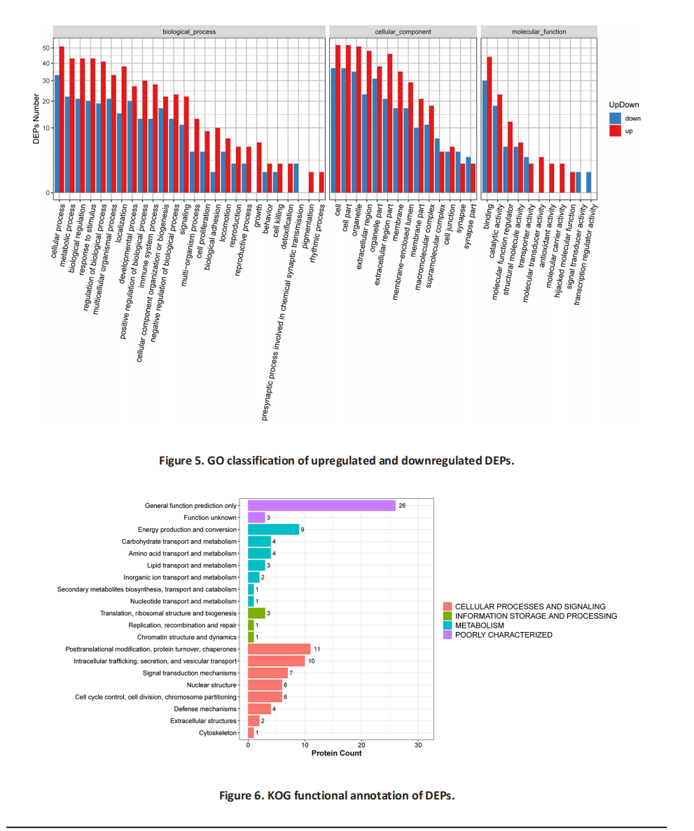 Go and KEGG enrichment analyses indicated that several upregulated DEPs identified herein play a role