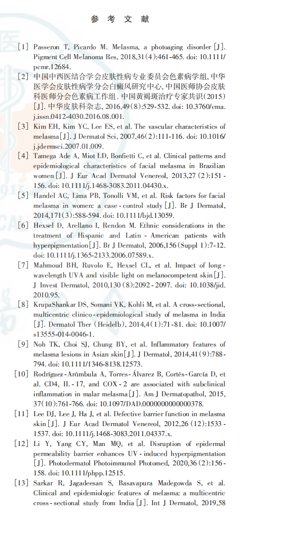 Consensus on diagnosis and treatment of melasma in China(2021 version)