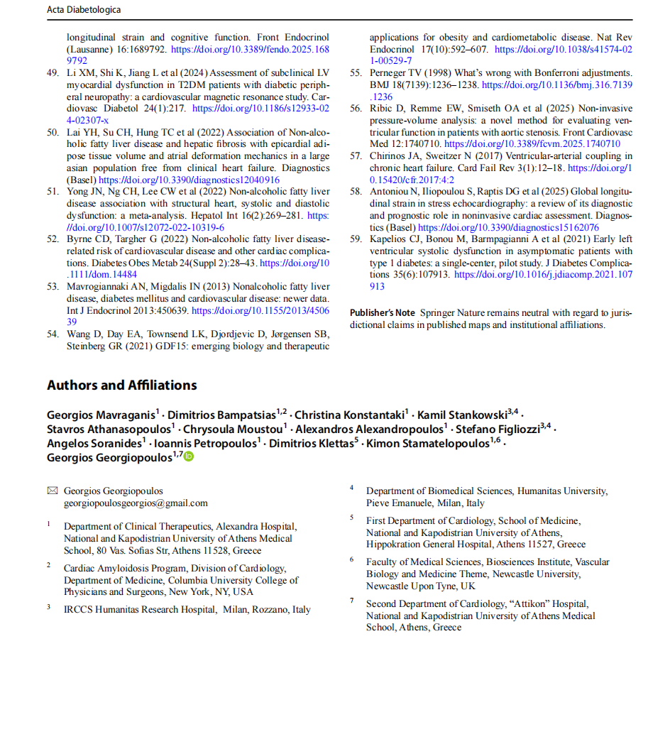 Acknowledgements Dr Georgiopoulos would like to express his grati-tude to Lefkos Stavros - The Athens Clinic for supporting performance of cardiac MRI exams in study participants and to Mr S. Psixaris, senior radiographer for conducting CMR exams.